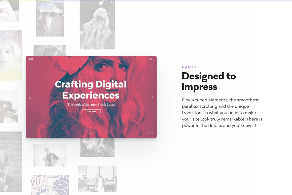 PILE is a daring, refined and flexible Portfolio WordPress theme which makes it the perfect tool to showcase any kind of creative work. From agencies to art directors, from illustrators to photographers and other daring doers, PILE is the best comrade in the digital journey.